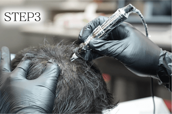 一つ一つ毛根を描くように丁寧に施術.最新のマシンで麻酔を使用しなくとも