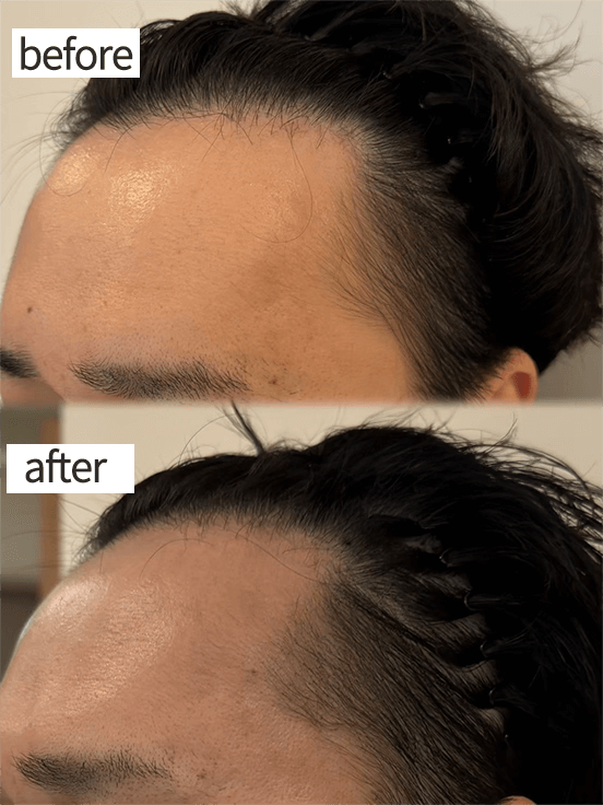 痛みはほぼなく、施術時間も従来の1/5程度です。3日~1週間程度で表面の角質が剥がれ落ちますが、洗髪をしている為、気が付かない程度です。痒みが出る